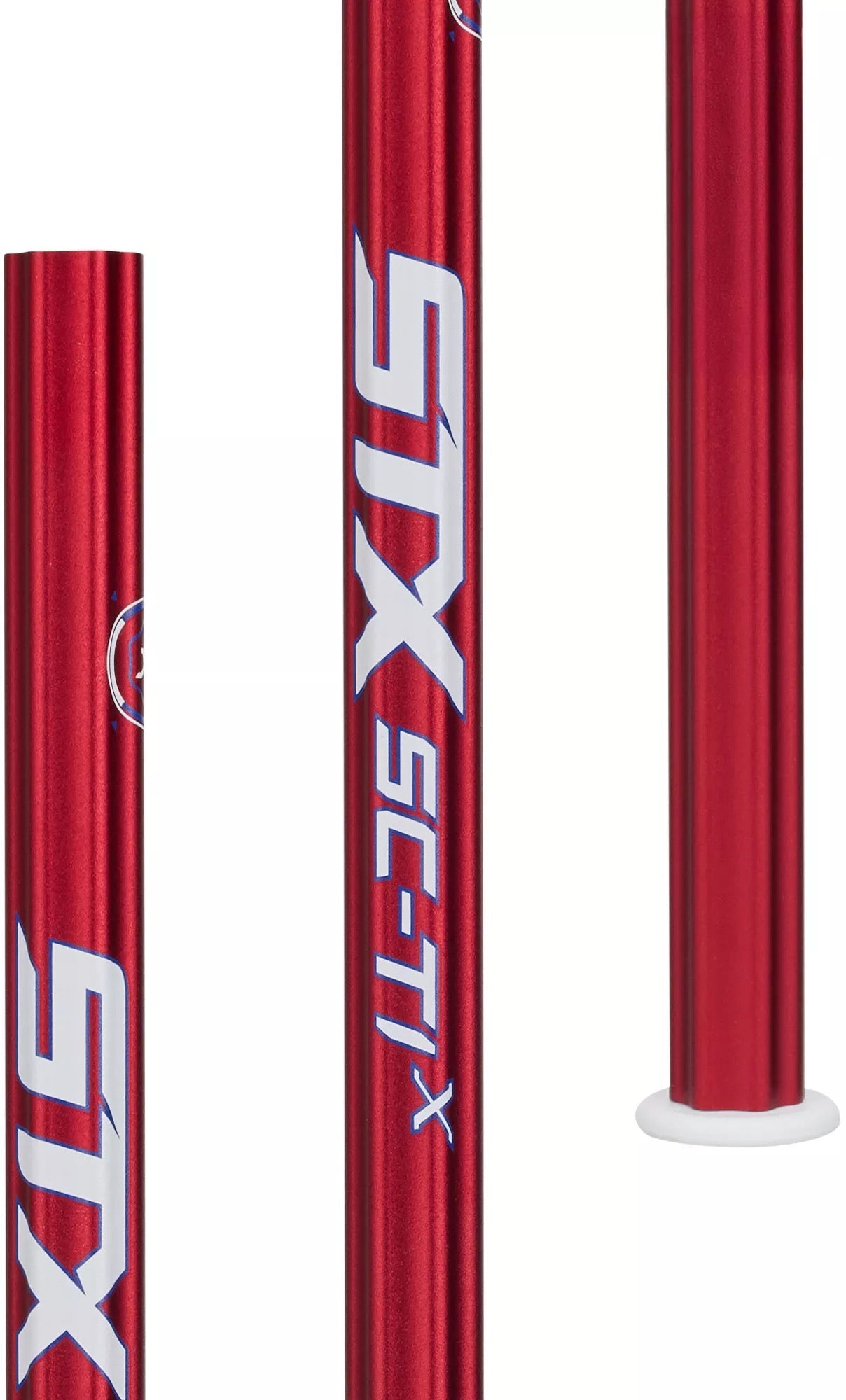 The STX Sc-Ti X lacrosse shaft has one of the best strength to weight ratio's in the game. This shaft is primarily coveted by attackmen and midfielders that want the lightest feeling shaft on the market. Super simple graphics and no frills design lets your play do the talking. The STX Sc-Ti alloy shaft series is the real deal and Sci-Ti technology has been a proven winner year in and year out.